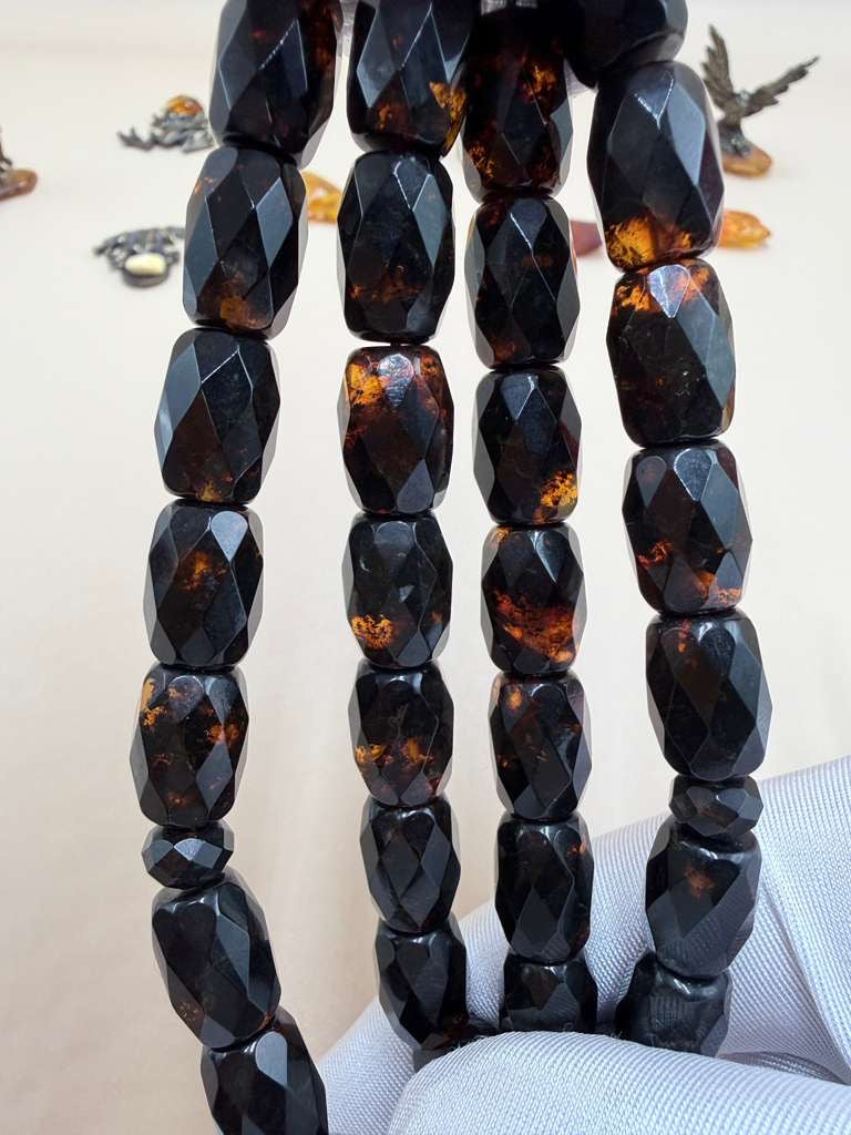 Russian Amber Misbaha, polished “Barmeli” style.