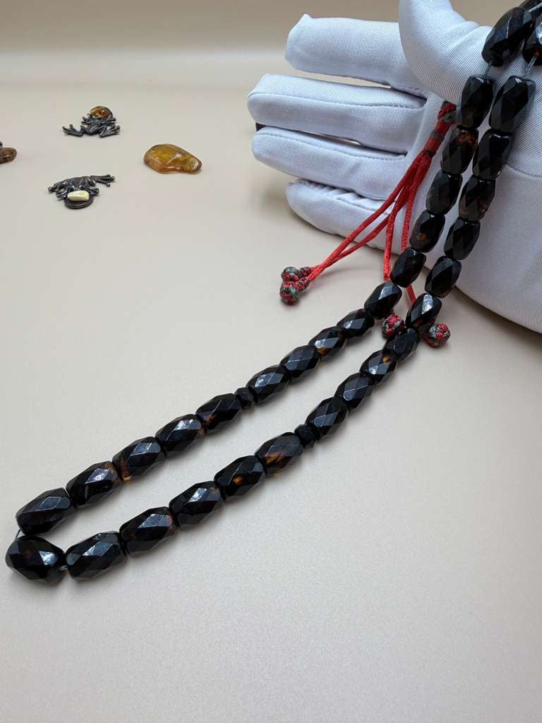 سباح كهرمان روسي مترش قصّة برميلي. Russian Amber Misbaha, polished “Barmeli” style.