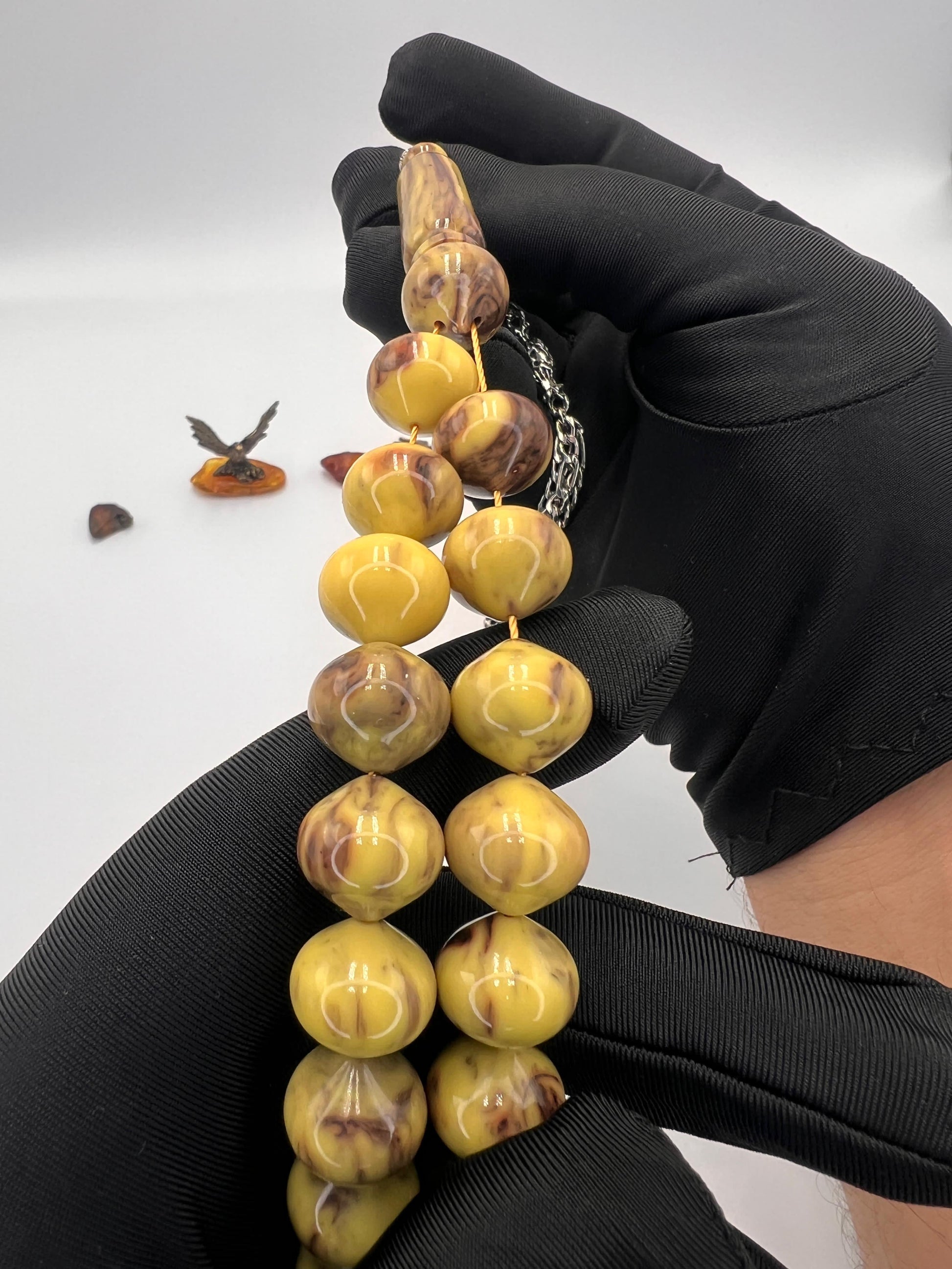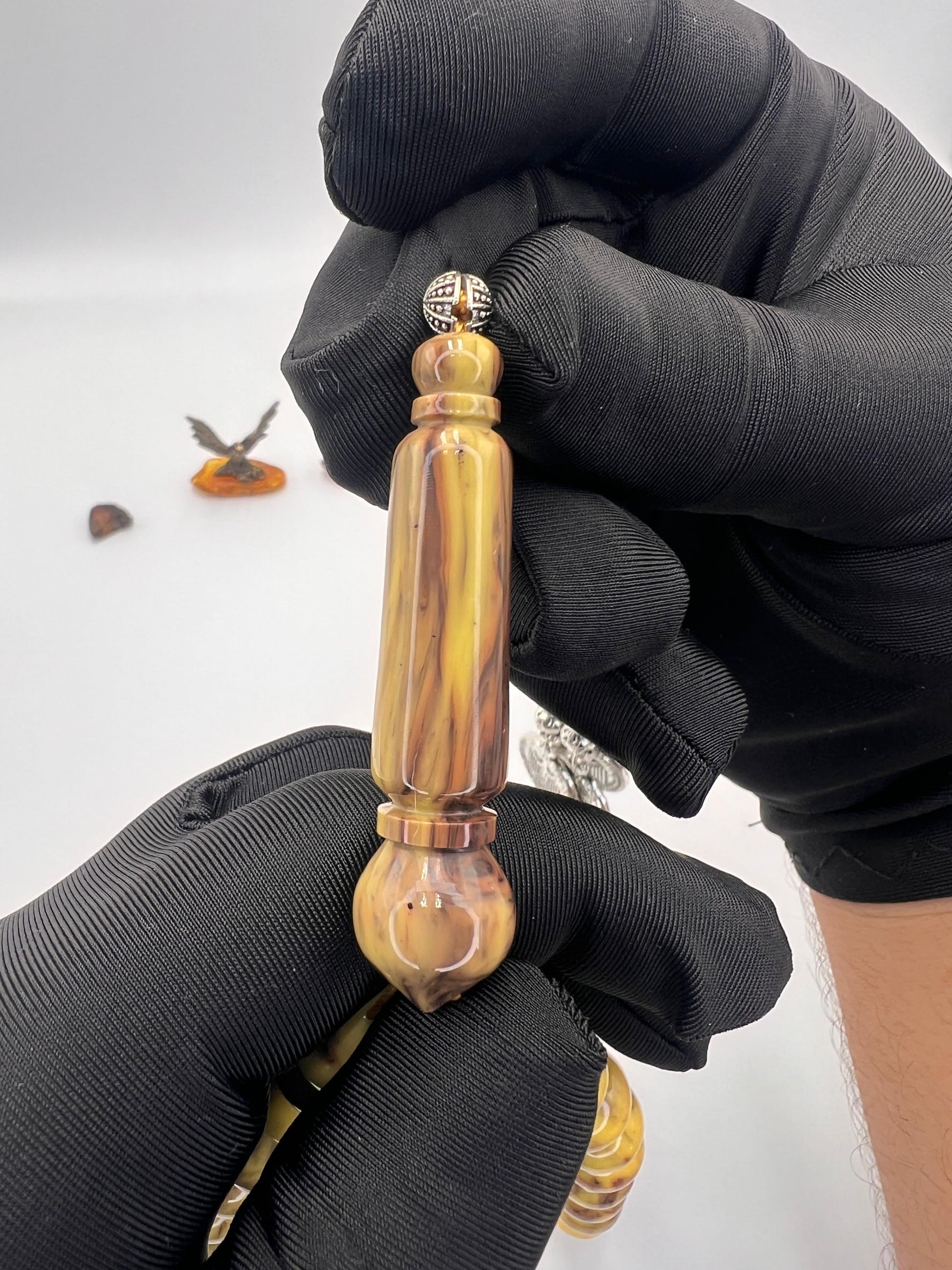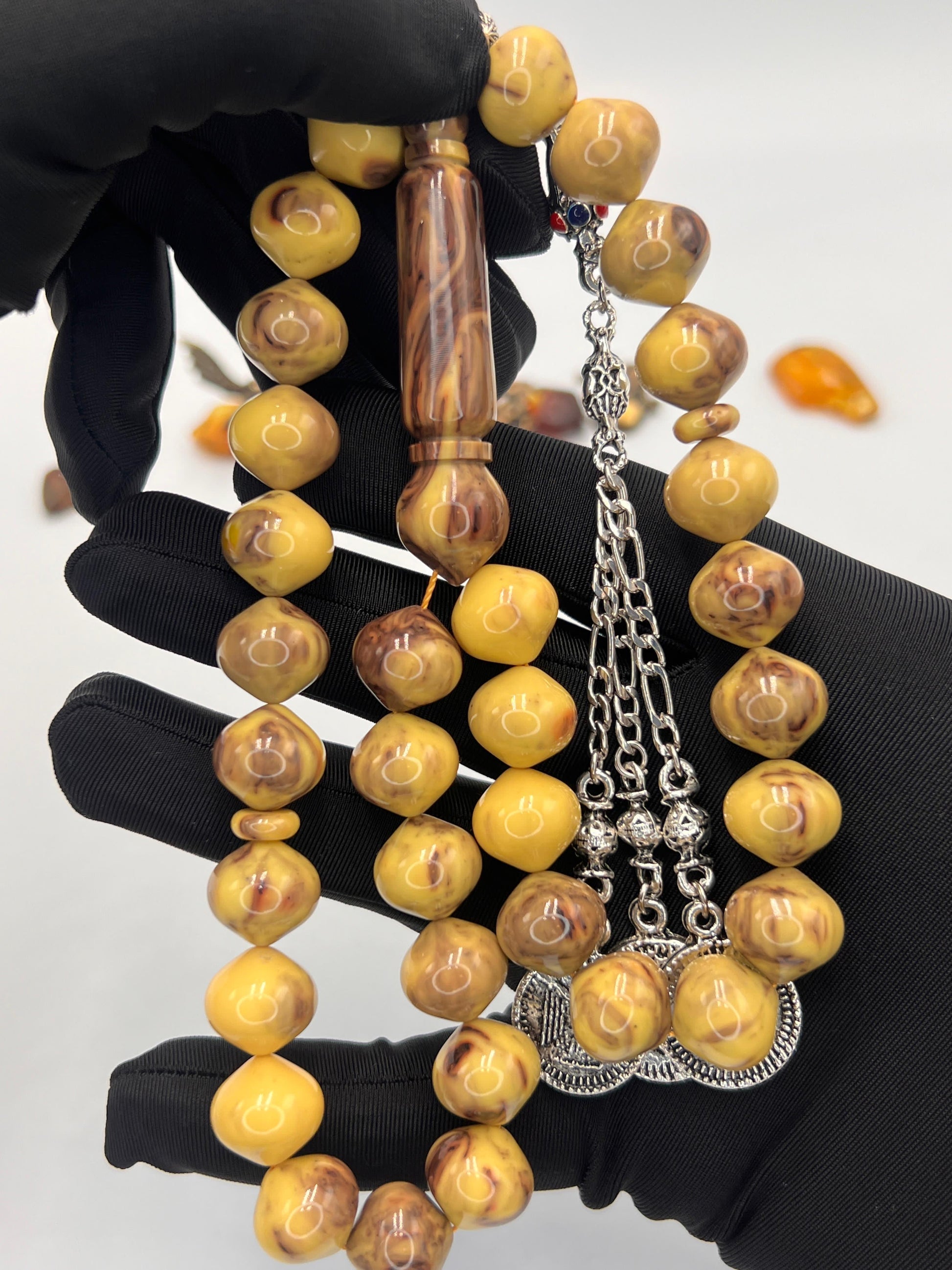تشرنوبل مقابض، يتميز بجمال لونه وجودة خامته الفريدة، مما يجعله قطعة راقية ومميزة لهواة المسابح النادرة والقطع الفاخرة.