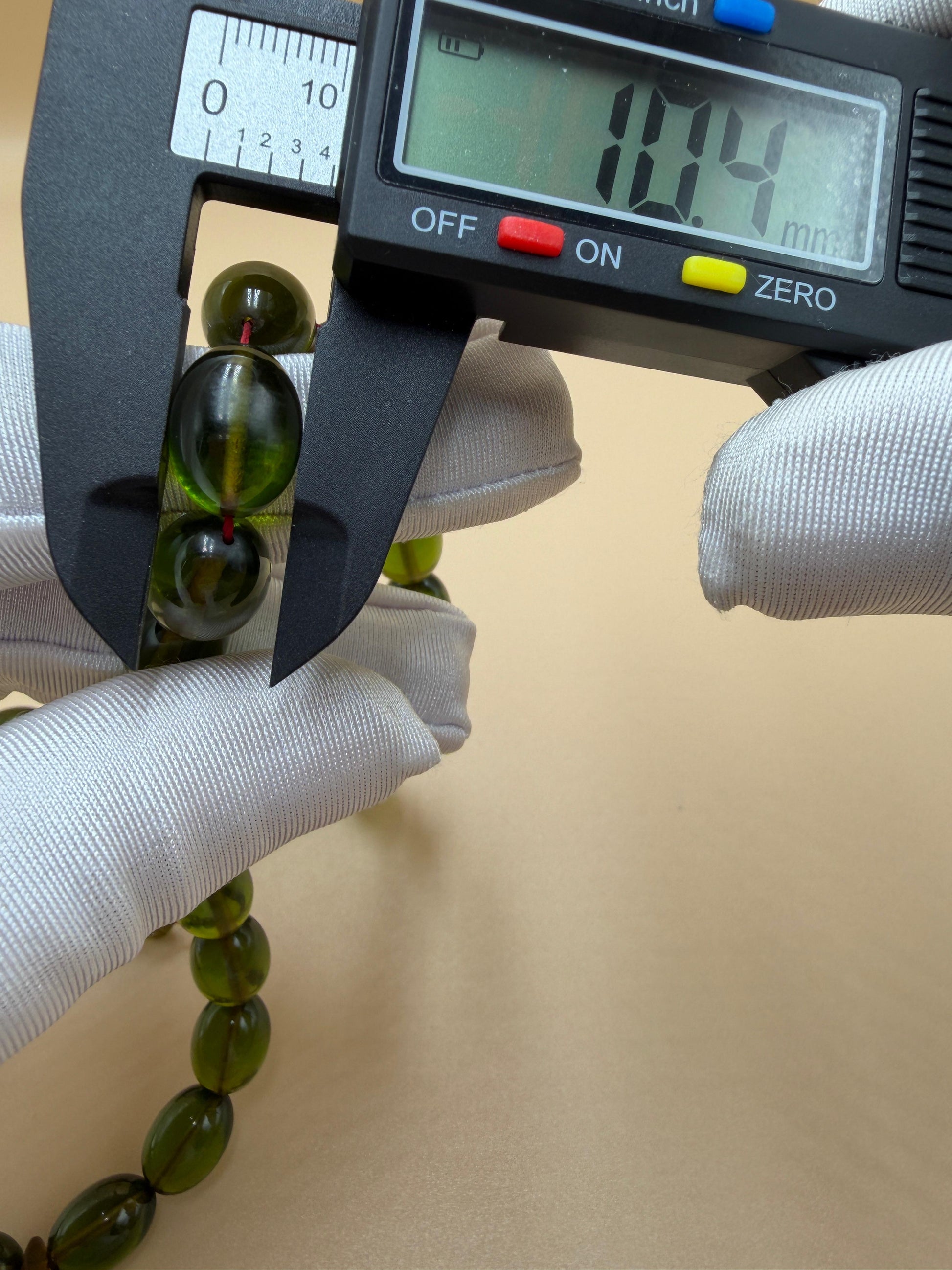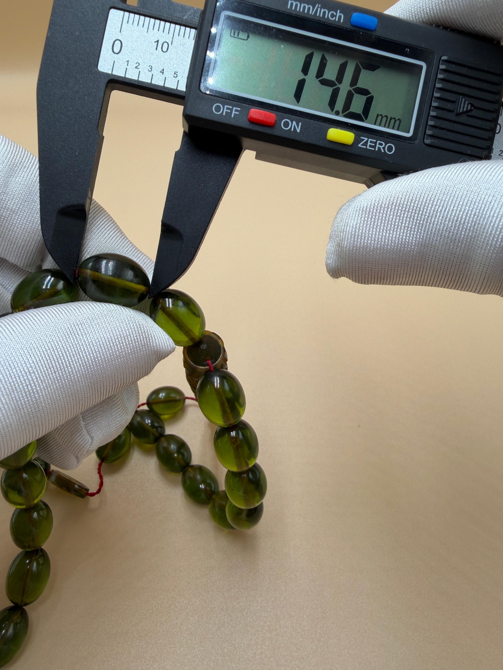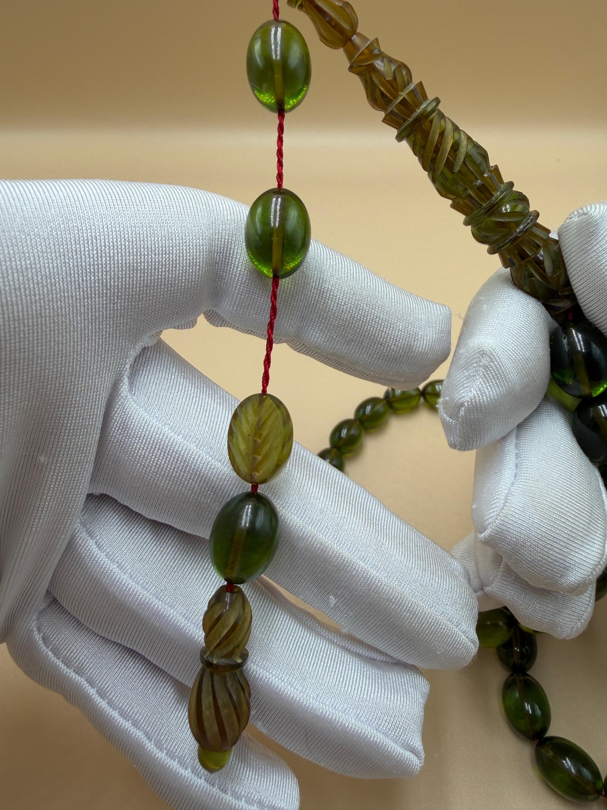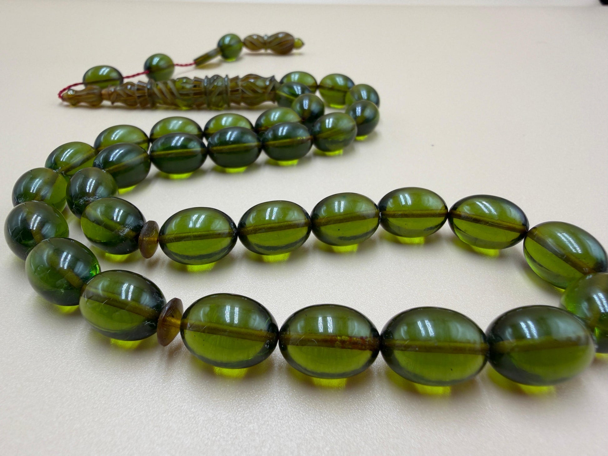 مسباح سندلوس شفاف نفطي، مع شاهد مميّز منقوش. Transparent Oily Sandalwood Misbah with a Distinctively Engraved Marker.