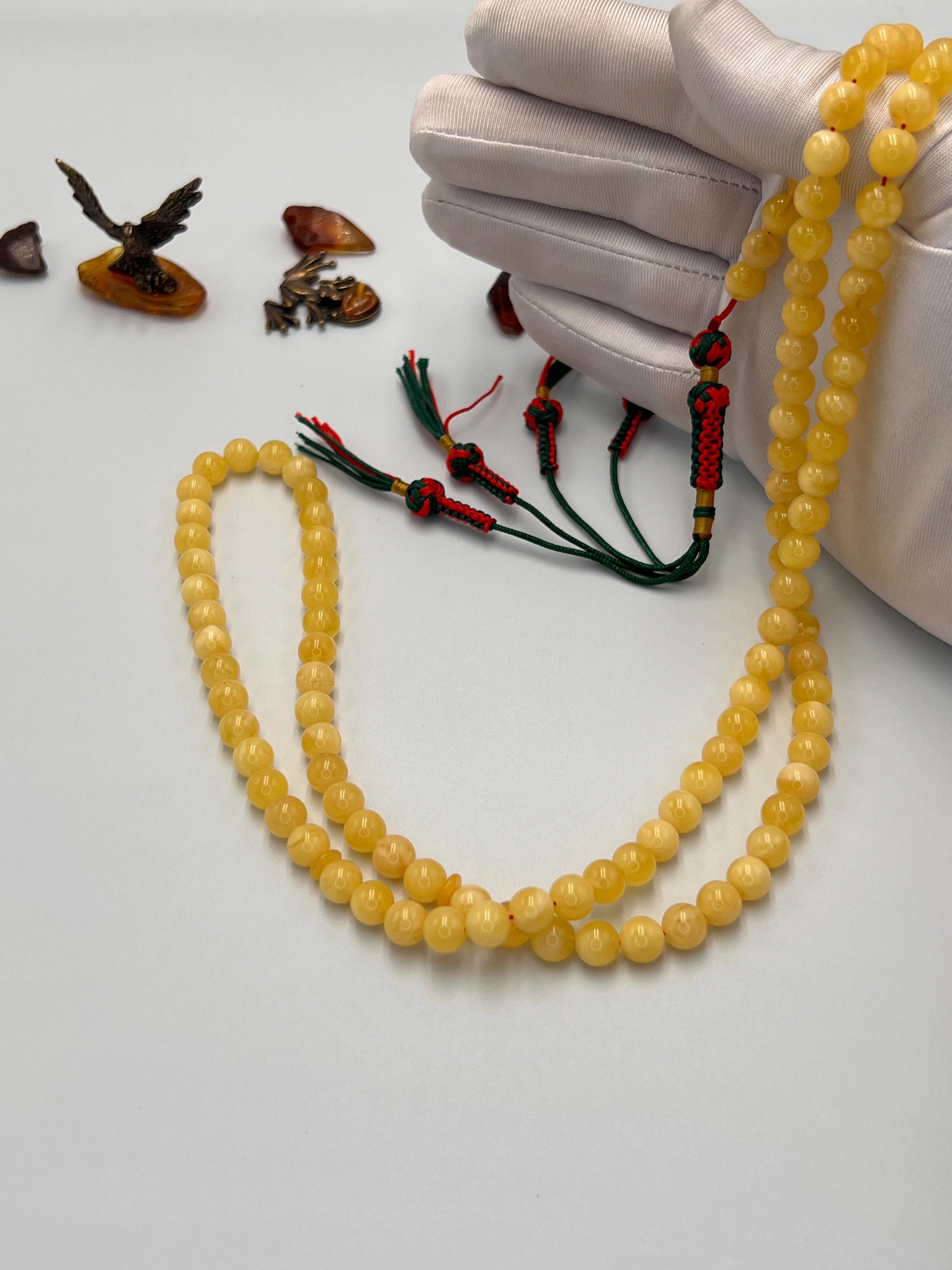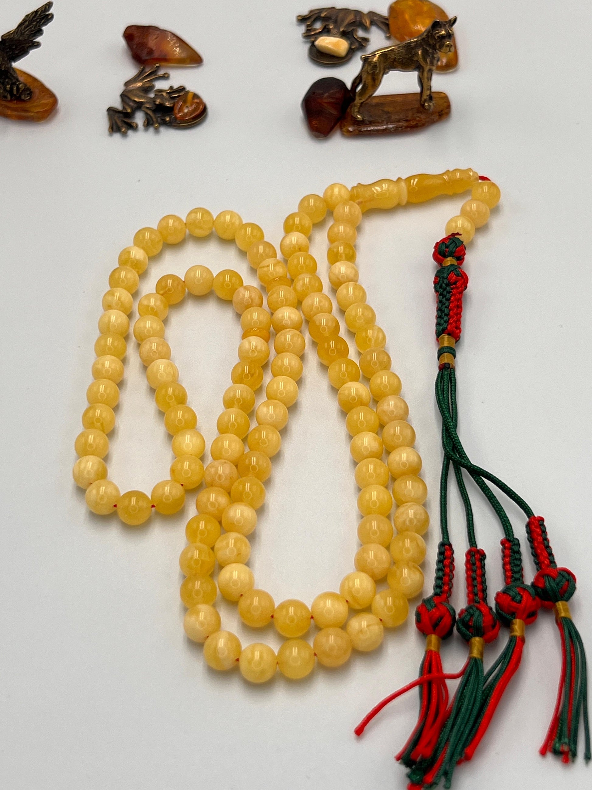 Baltic Amber Prayer Beads (99 beads) with an original laboratory certificate from Poland. Featuring a warm natural color and perfectly matched beads, this misbaha is a unique piece for collectors and those who appreciate luxury, authenticity, and timeless elegance.