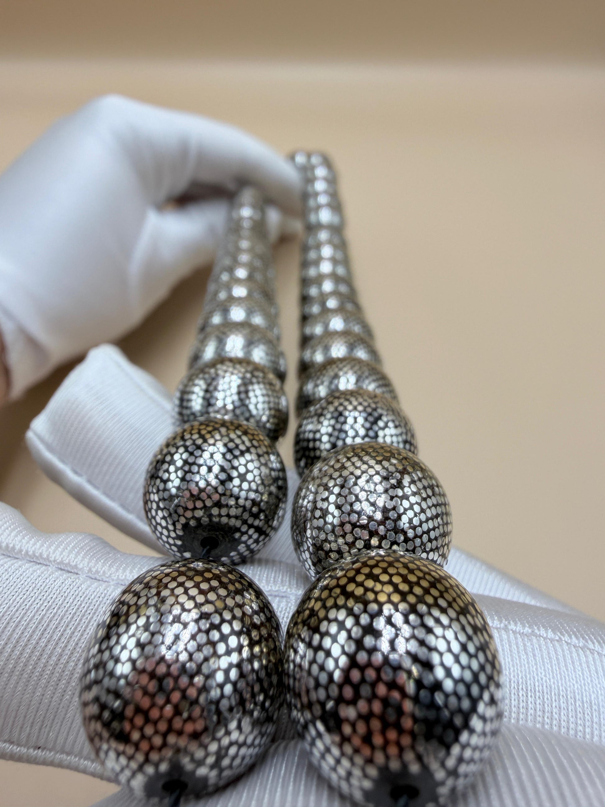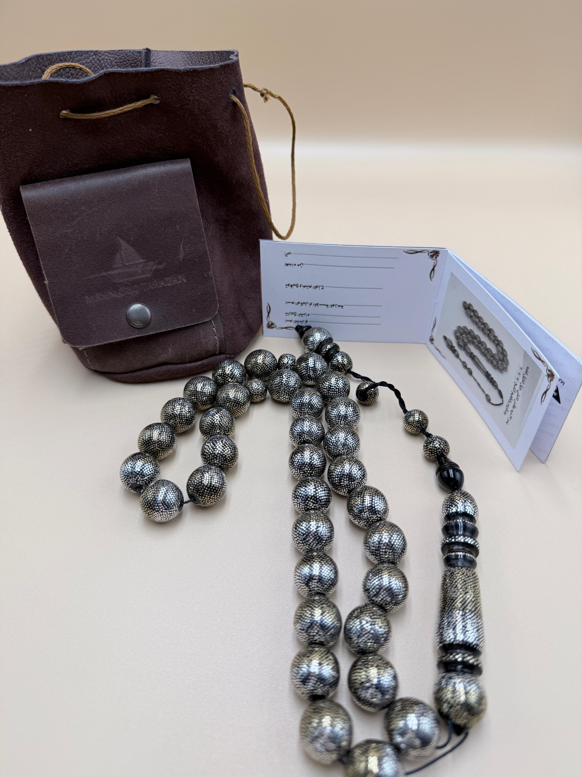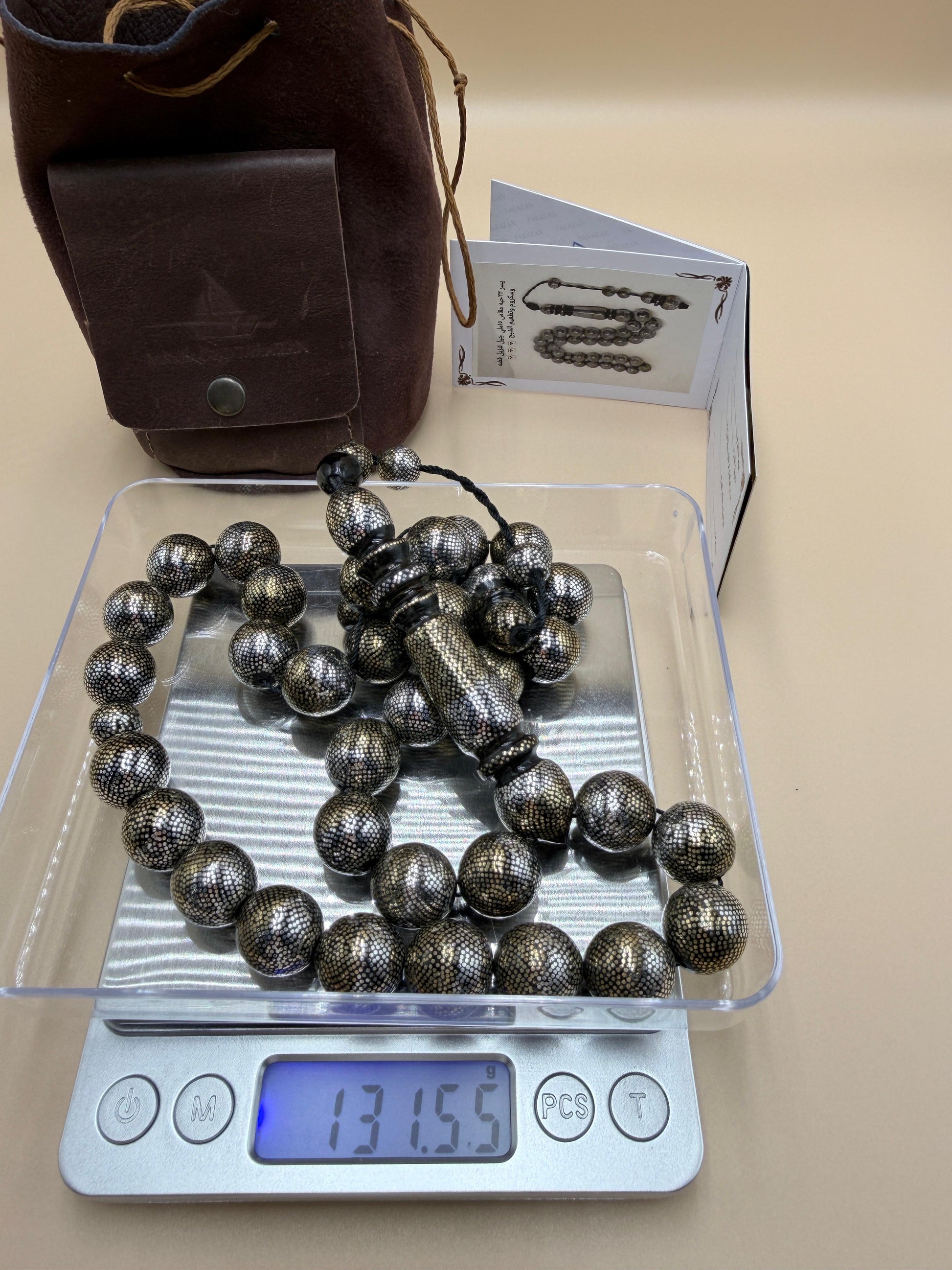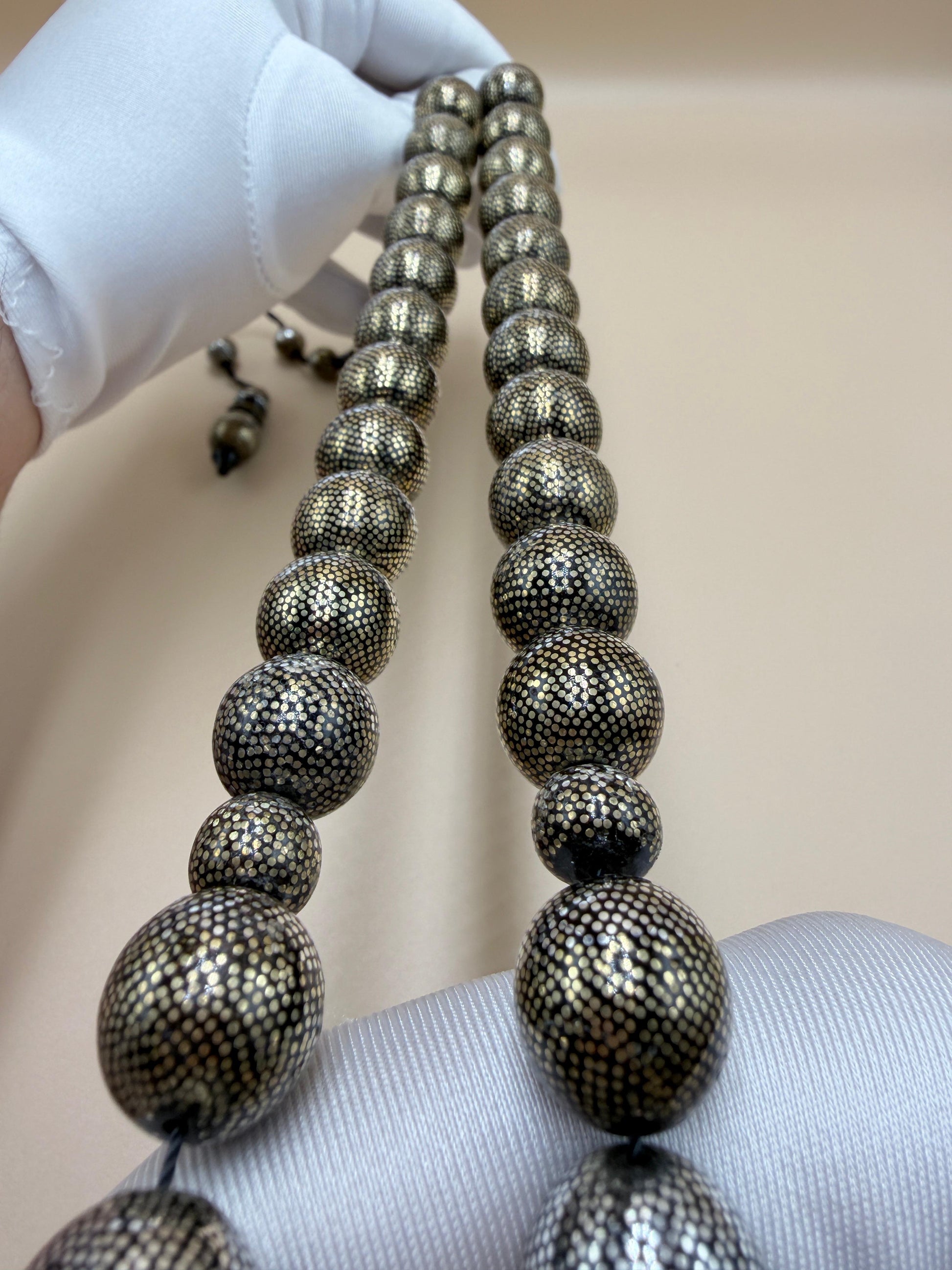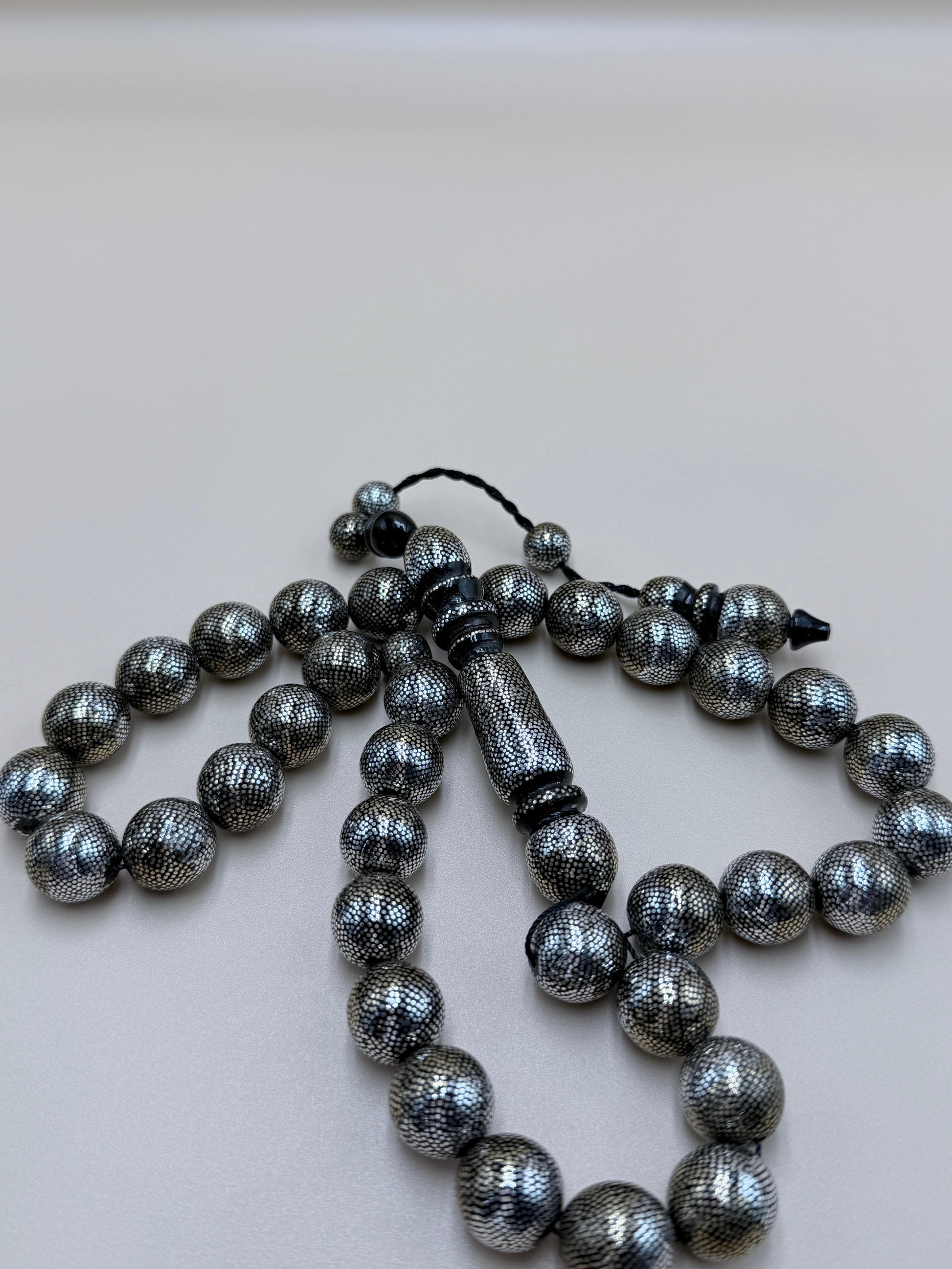 مسباح محمود طرزان – يسر بحر أحمر بتطعيم فضّة وسكروم، إصدار الشبح. Mahmoud Tarzan rosary – Red Sea Yusr, inlaid with silver and scrom, Phantom edition.
