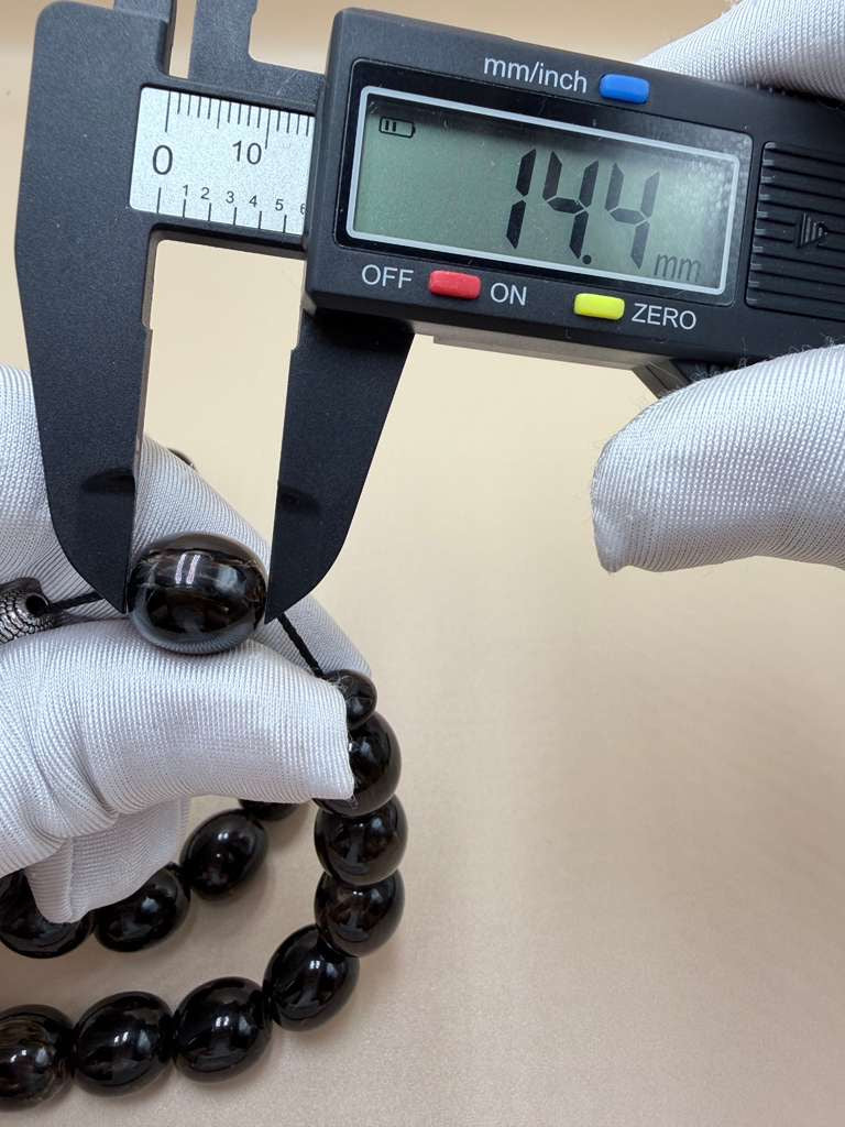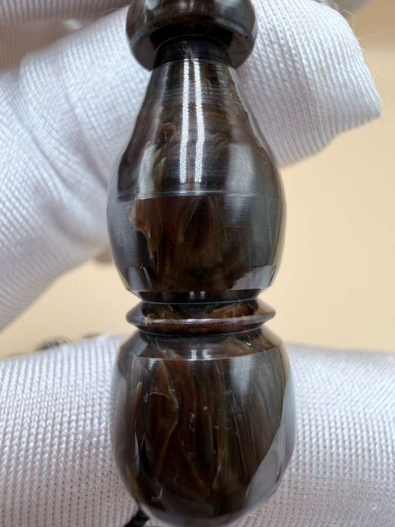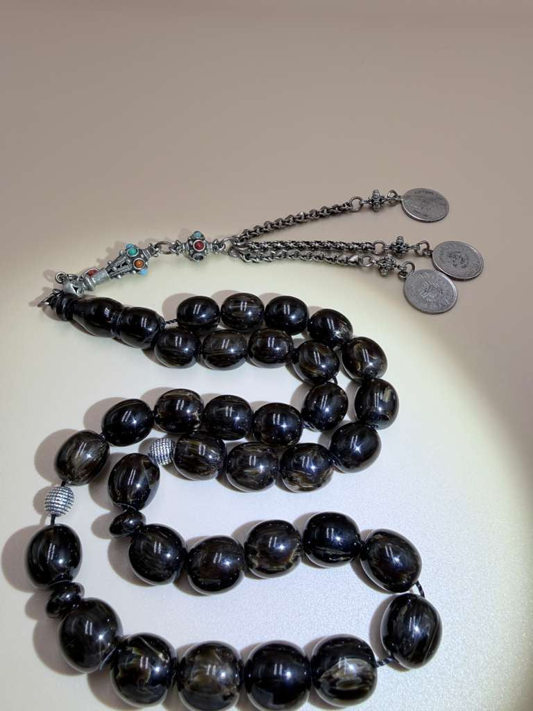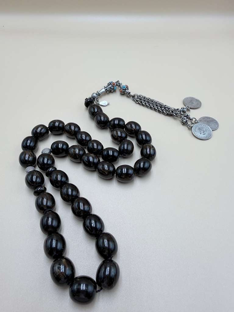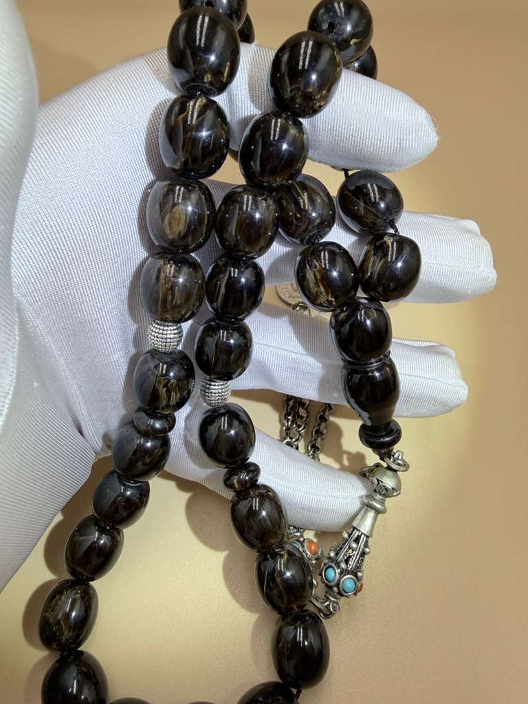 مسباح مسكي خام بولندي، بخراطة جديدة، مع شرابة فضة 500.Polish Raw Musk Misbah with New Carving, Featuring 500 Silver Tassel.