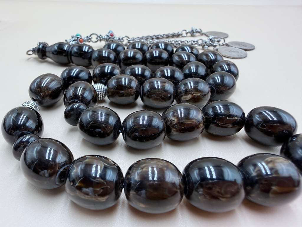 مسباح مسكي خام بولندي، بخراطة جديدة، مع شرابة فضة 500.