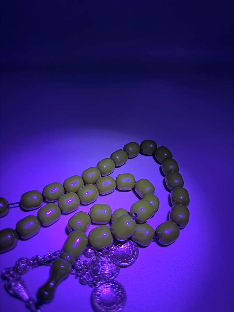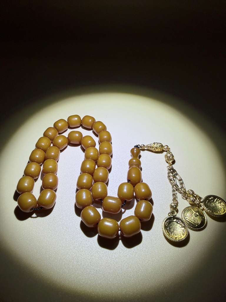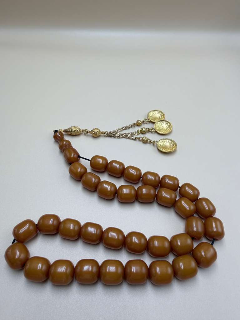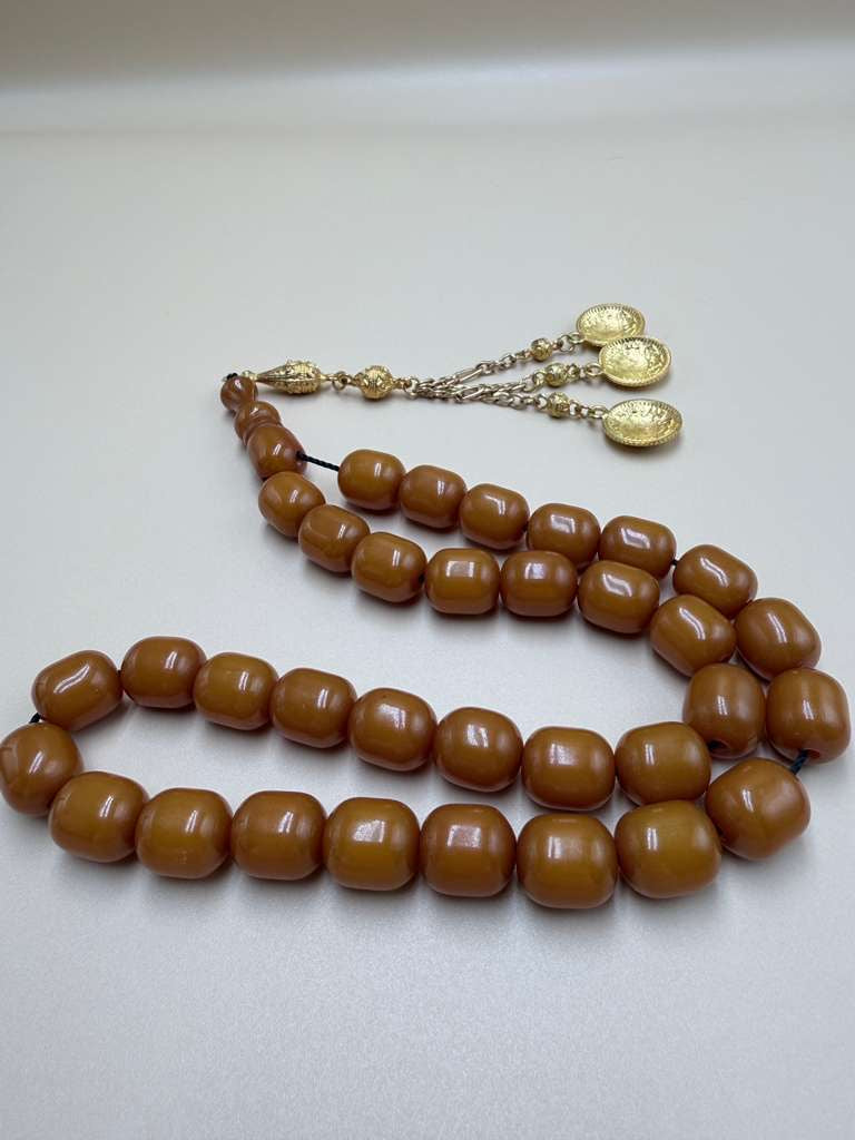 مسباح مسكي خام قديم، مع شرابة مطليّة ذهب 24K.