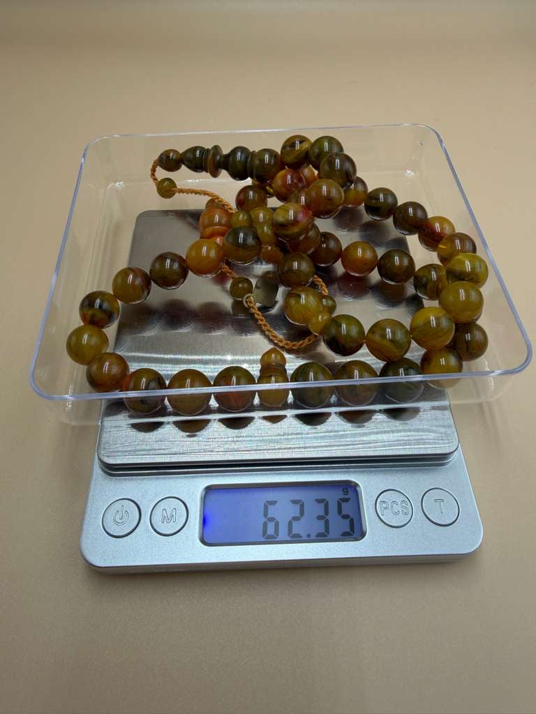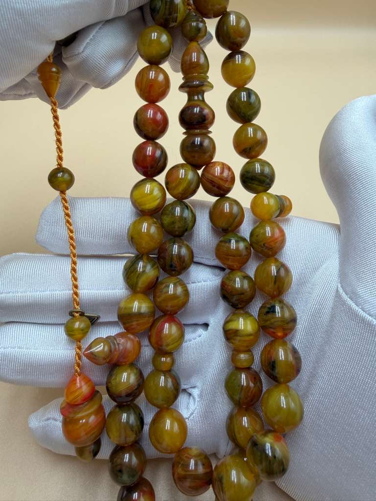 مسباح مسكي مميز، بخراطة مجد، عدد 45 خرزة. Distinctive Musk Misbah with Majd Carving, 45 Beads.