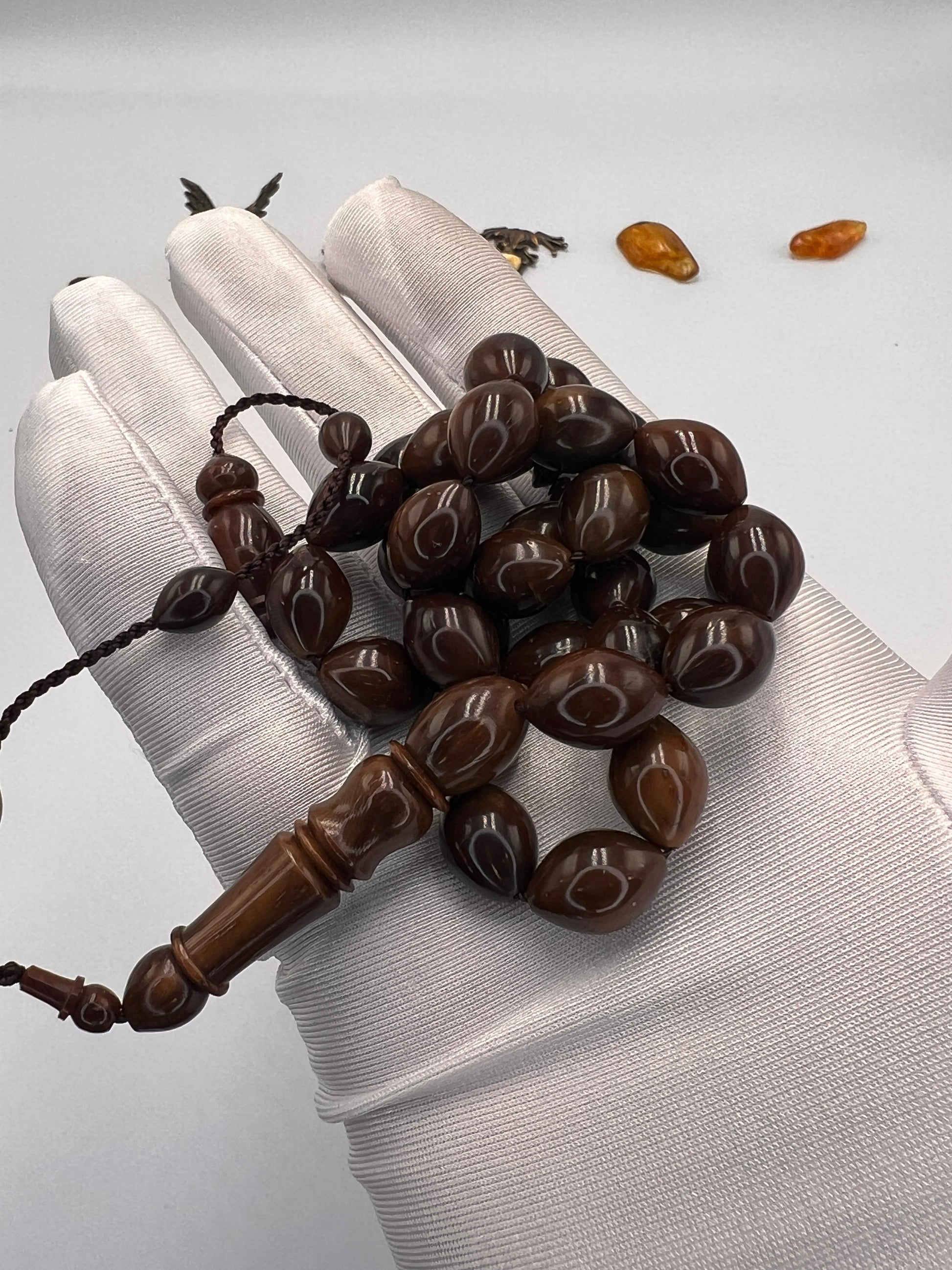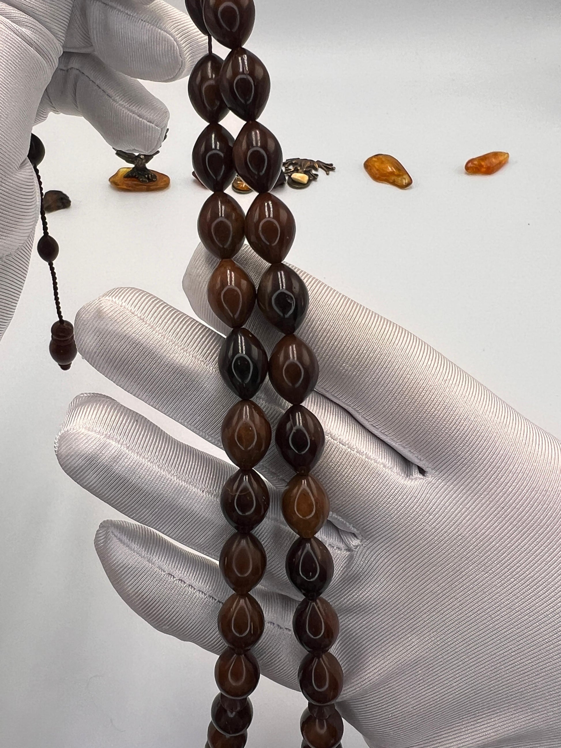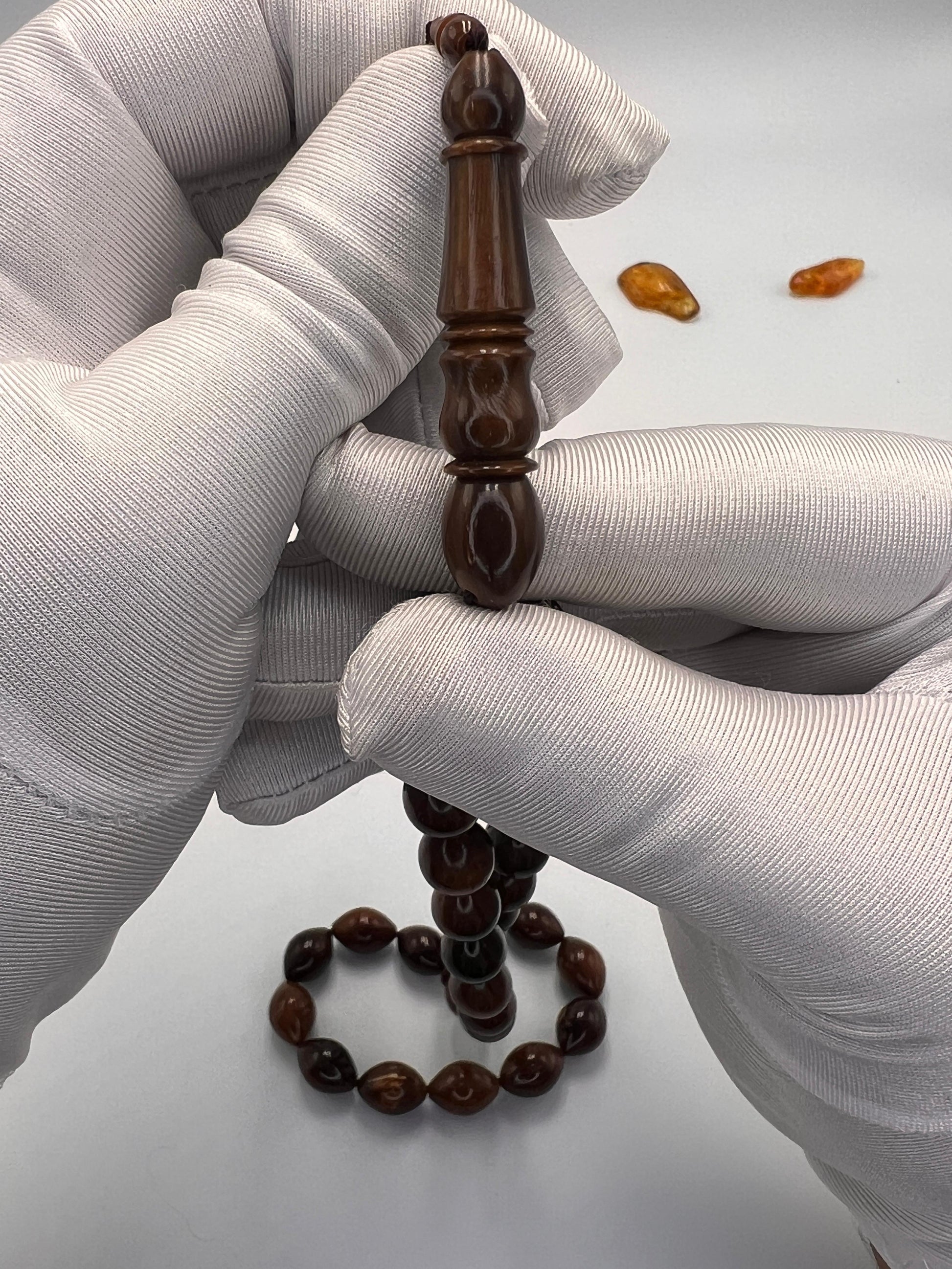 Misbaha made from Kok Nargin fruit, featuring a natural texture and unique color. This elegant piece reflects authenticity and beauty, combining a spiritual touch with luxury — perfect for collectors and lovers of rare prayer beads.