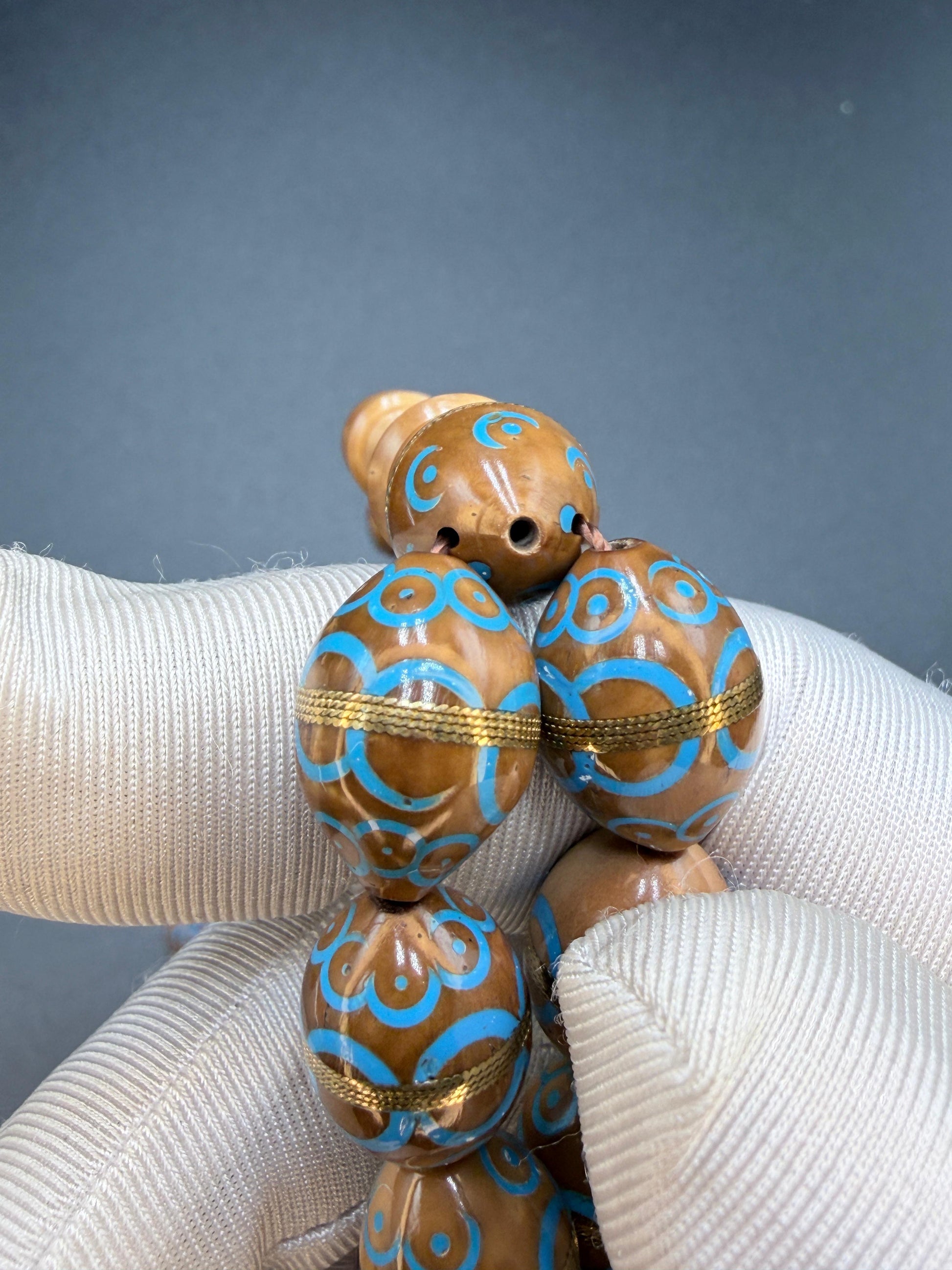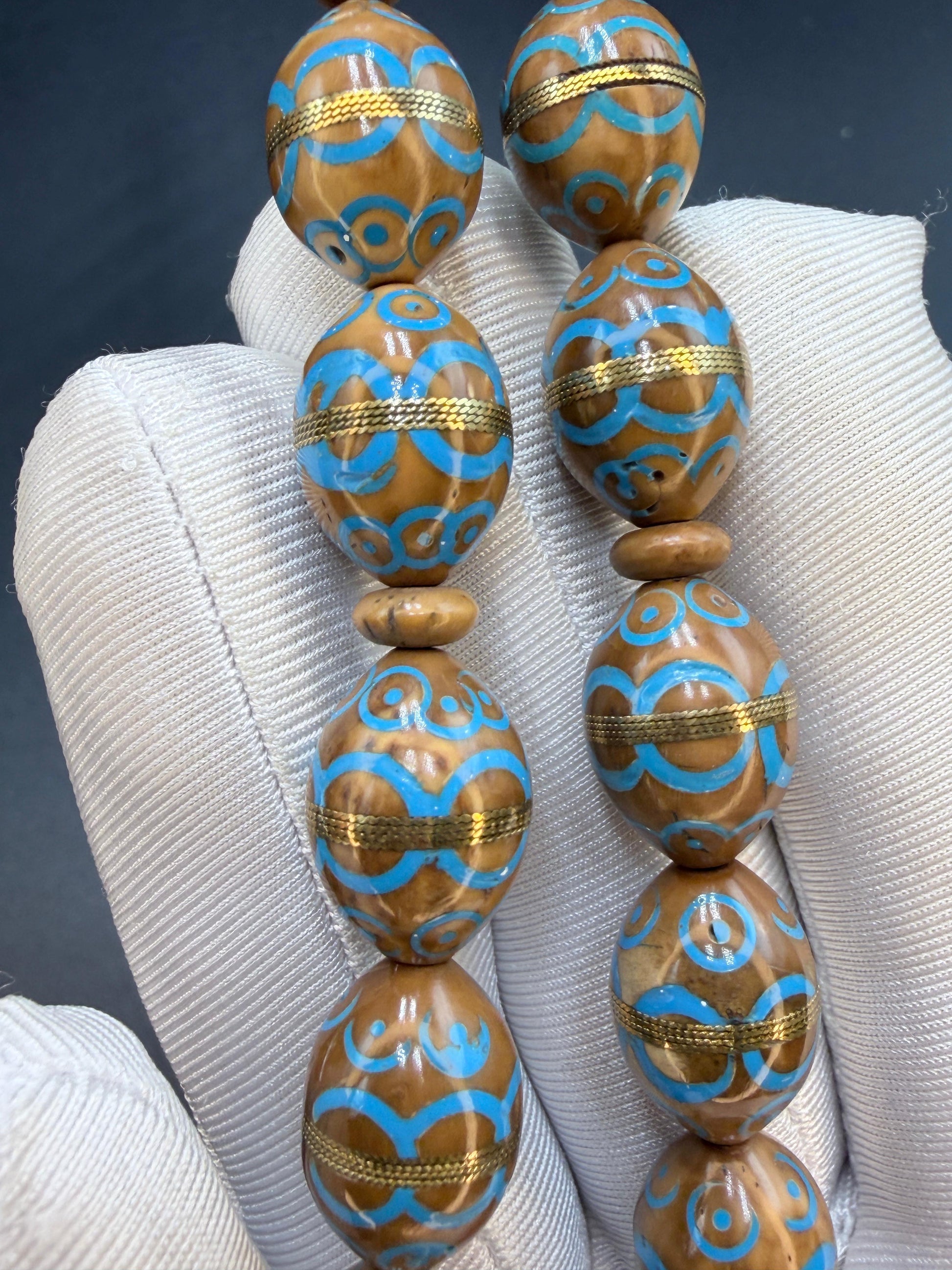 مسباح نارجيل مطعم نحاس ومينا فيروزnarjil cook -wood Misbaha inlaid with copper Coconut-wood Misbaha inlaid with copper and accented with turquoise enamel.