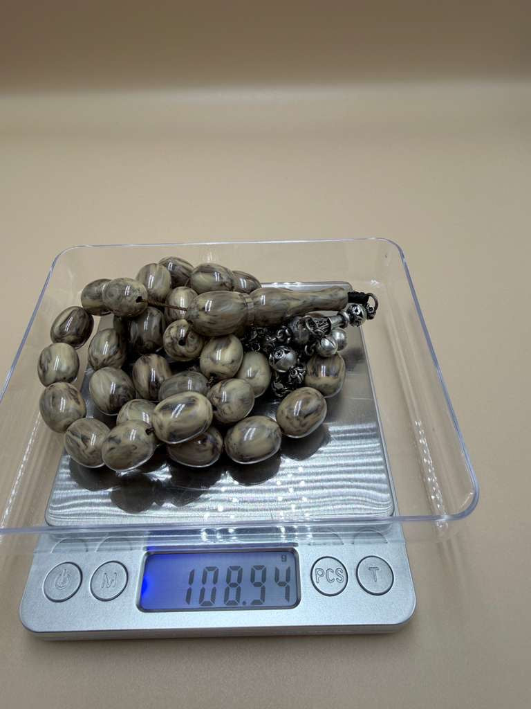 مسباح سندلوس شبيه تشرنوبل، مع شرابة فضة عيار 500 وكسّار خام عصيان، قطعة مميّزة لهواة المسابيح الفريدة.
