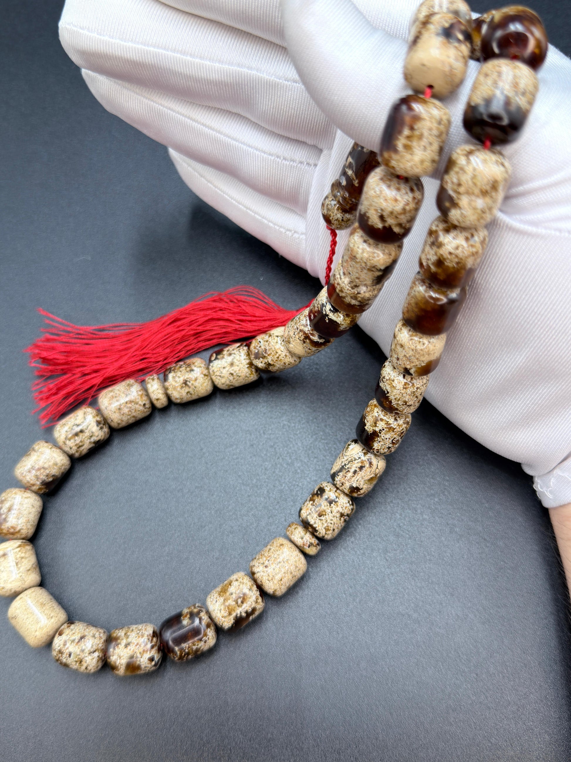 Symmetry Amber Misbaha, a luxurious piece with natural color and distinctive shine, perfect for collectors of unique Misbahas.”